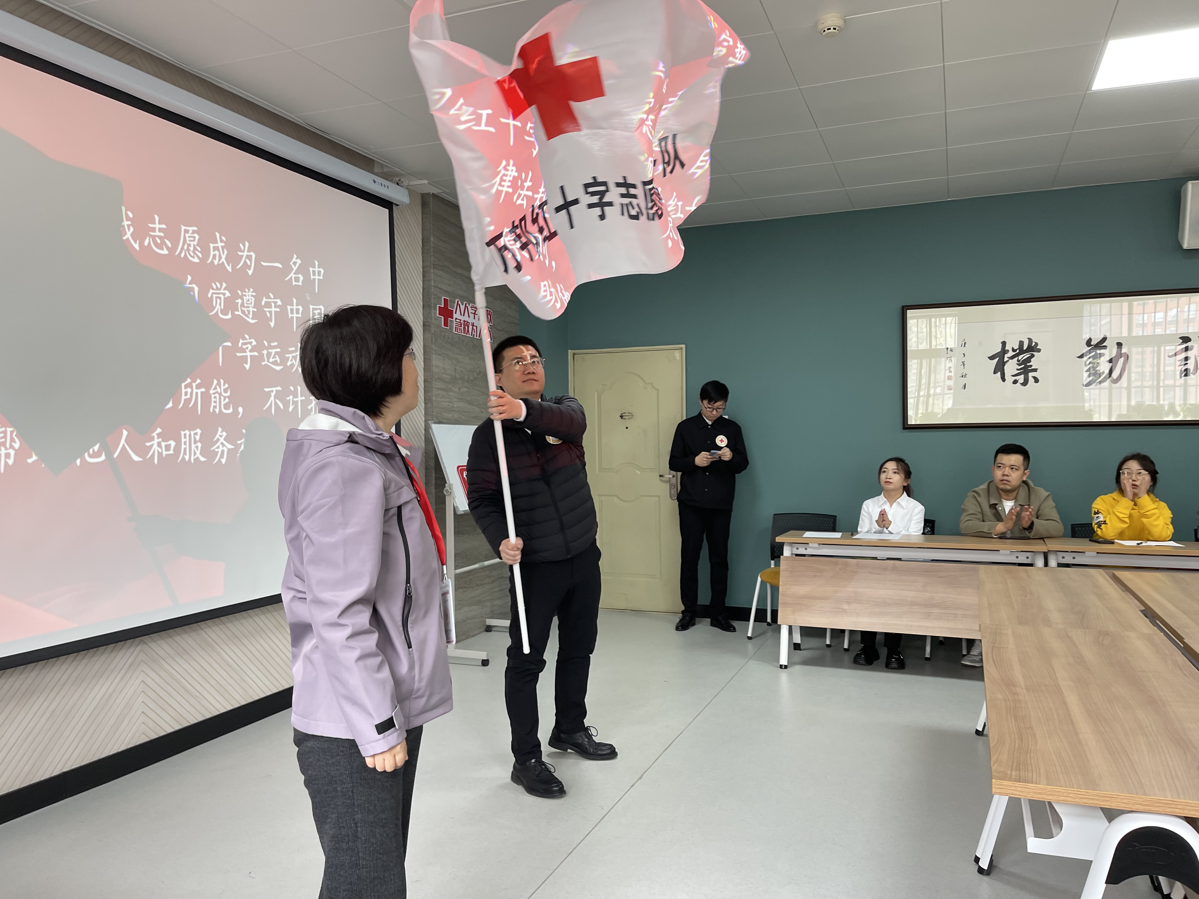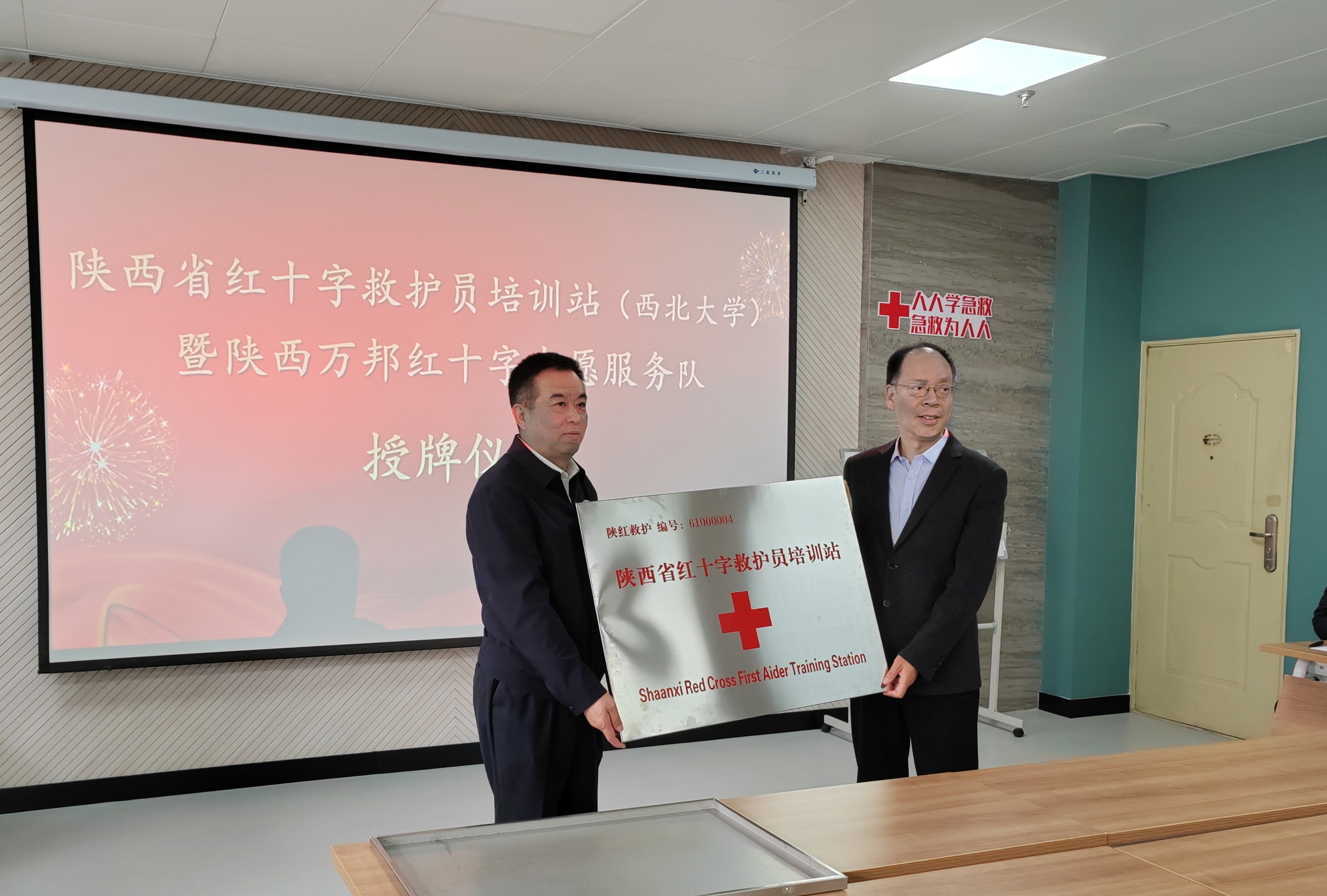 陕西省红十字会一级巡视员关居正代表陕西省红十字会为伟德国际官网授牌,Bevictor伟德官网院长叶培哲代表学校接受了授牌;省红十字会组织宣传部副部长校慧敏为陕西万邦红十字志愿服务队授牌授旗。
