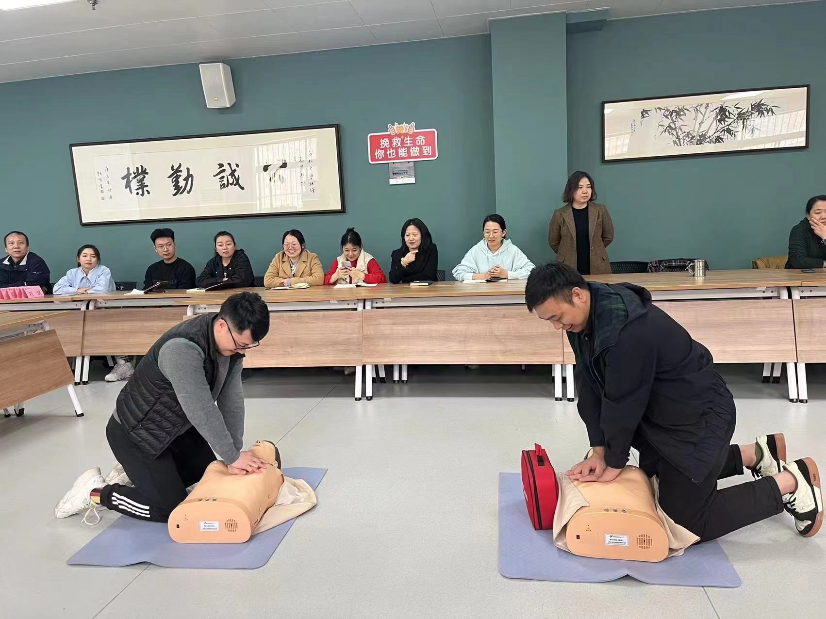 会后,组织开展了具有陕西省红十字认证的持证应急救护培训(心肺复苏CPR+AED)。