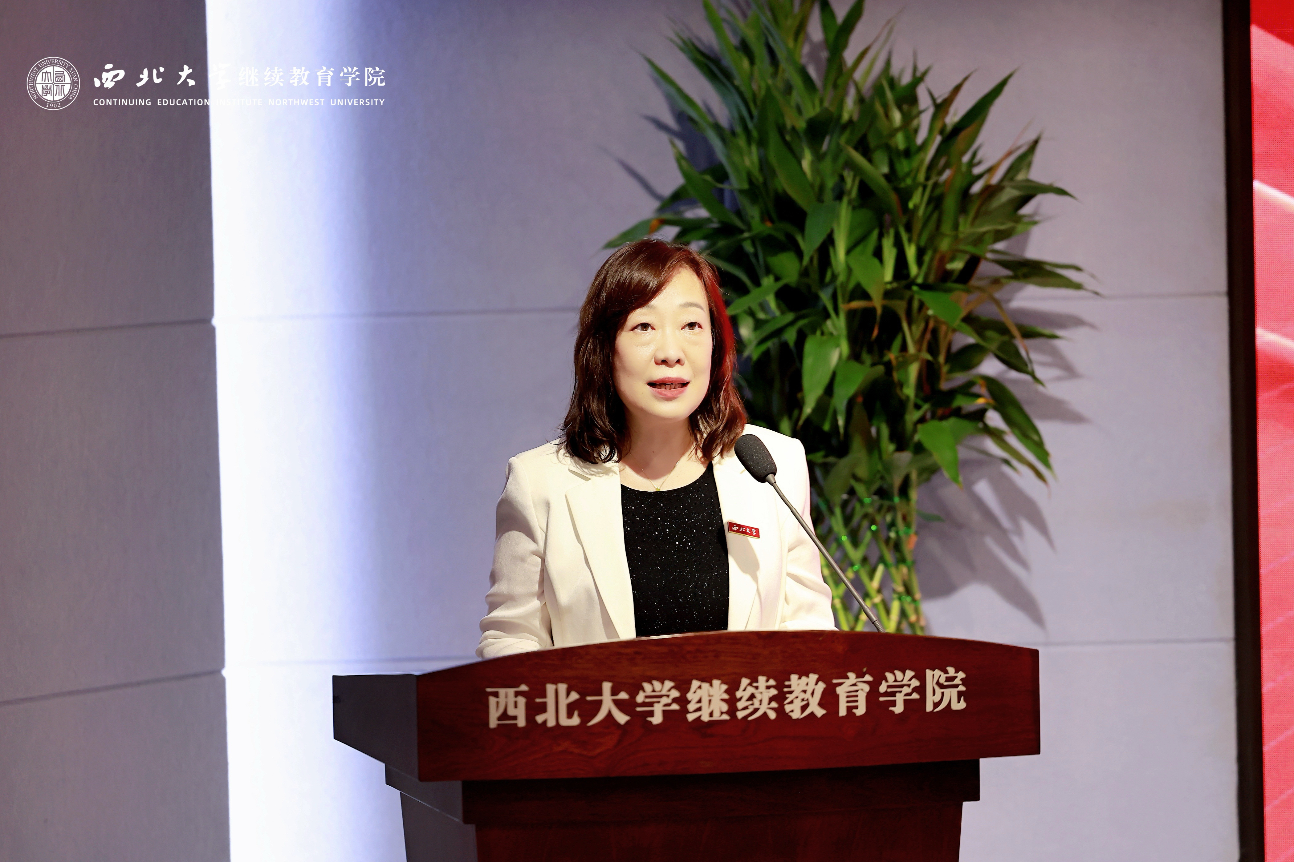曹蓉在致辞中向全体毕业生致以最热烈的祝贺。她表示,同学们在求学路上披荆斩棘,不断探索,超越自我,克服了工作、家庭与学业交织的重重挑战,在学业中取得的成就,收获的喜悦,为人生的前行之路增添动力,让人生更加光彩。她希望,未来同学们能以“热爱之心”践行终身学习,以“实干之心”对抗情绪困境,以“本真之心”坚守自我价值。摒弃浮躁,向内聚焦,明确目标,不轻言放弃,全心专注自身全面发展,乘时代长风,破万里巨浪,过有意义的人生。