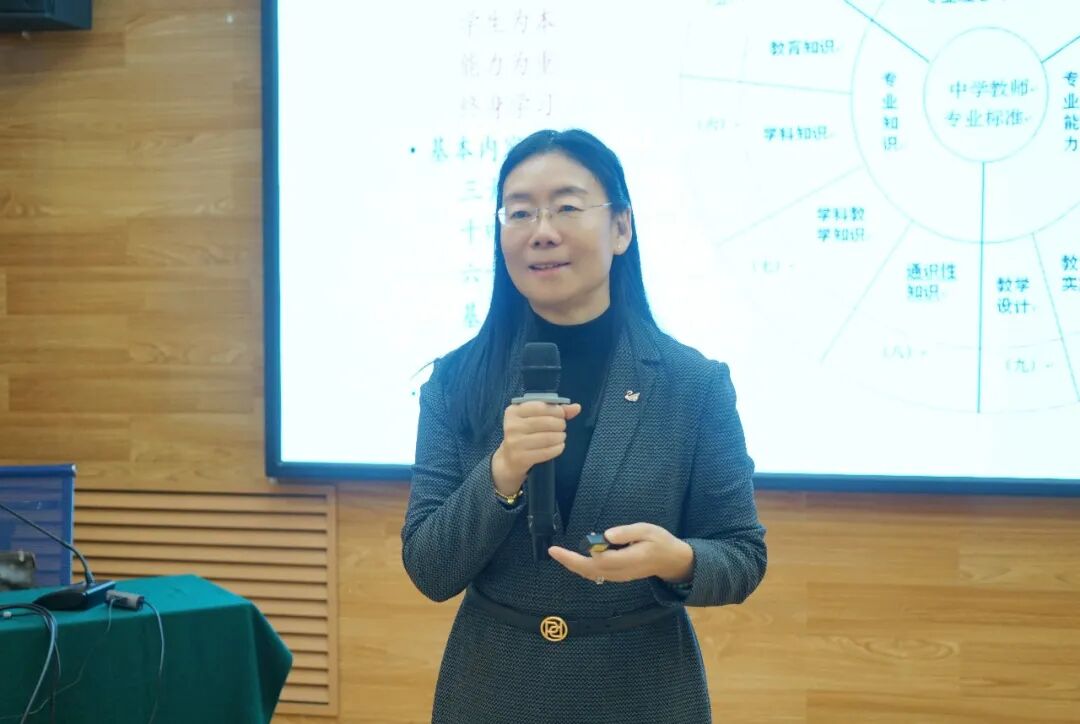 杨筱冰结合多年基础教育教学成长案例,围绕“提炼内功,赋能成长”“行为世范,勤学笃行”“智慧育人,启智润心”“勤修乐教,甘于奉献”“牢记使命,培育新人”“赓续初心,永做教育追梦人”六个方面,分享了自身对“教育家精神”的理解和践行。她表示,“技能”是好教师的立足之本,要找到适合自己的授课方法,以自己的一言一行影响学生,用人格魅力和学识魅力赢得学生的尊重和爱戴;善学才能善研,善研才能善教,以笃行夯实根基,以精湛的学识、深厚的素养、创新的理念,做学生前行的引路人,必能在教书育人岗位上作出新的更大贡献;教书并非易事,需要智慧,学科融合是教学的发展方向,客观地把握、判断乃至解决拔尖创新人才培养、科教融合等一系列教育问题。她呼吁新时代教师不但要有扎实学识,更要树立终身学习的理念,以勤学笃行、求是创新的躬耕态度做学习的领跑者。